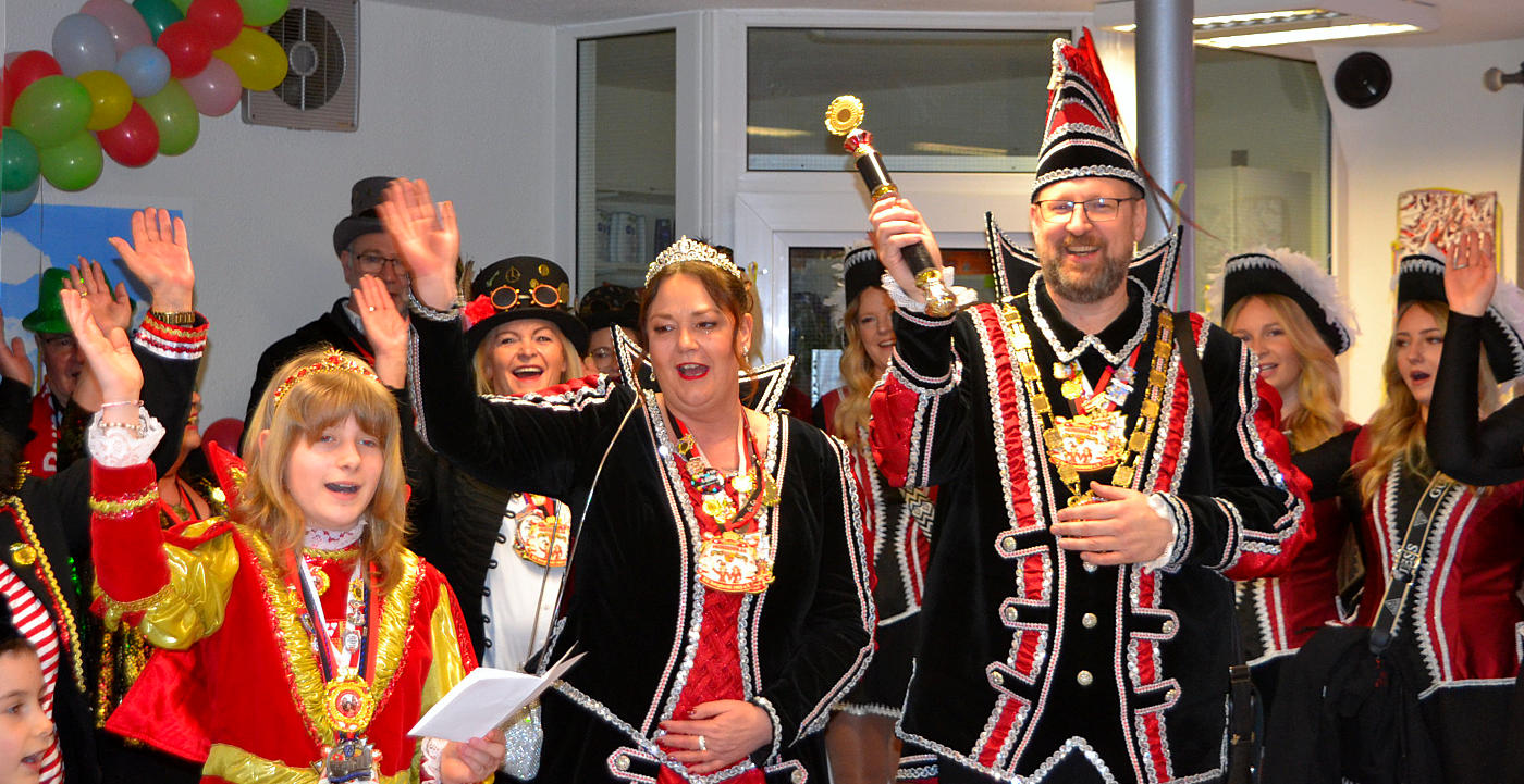 Endlich wieder ein Karnevalbesuch im Haus Bachtal. Auch für Prinz René II. und ihre Lieblichkeit Tanja I. ein bedeutendes Ereignis. (Foto: Eberhard Thomas Müller)