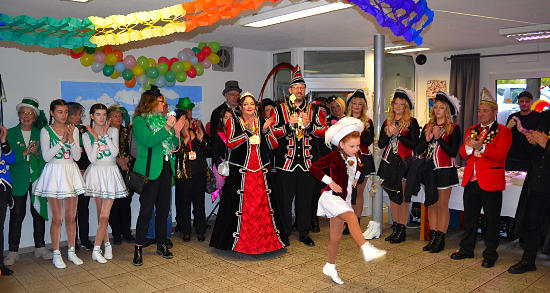 Bezaubernd auch das Tanzduo der 5/4 Damen, das auch Bewohner Michael Merz, einen echten Kölsche Jung, vor Begeisterung vom Stuhl riss. Dann tanzte auch die kleine Emma, die als junges Solomariechen des Prinzenpaares eine lange Karriere vor sich hat. Und selbstverständlich gehören zu einer Karnevalsitzung auch Büttenreden, die von den Bewohnern Dieter Pellinghoff und Julian Hein dargeboten wurden. Ein gelungener Karnevalssamstag, der Prinz René und Prinzessin Tanja mit dem Hofstaat und allen Burgbrohler Narren sichtlich begeisterte. Für die Karnevalisten ist es das größte Geschenk, wenn die Bewohnerinnen und Bewohner und auch die Mitarbeiterschaft vom Haus Bachtal ihren Spaß haben.